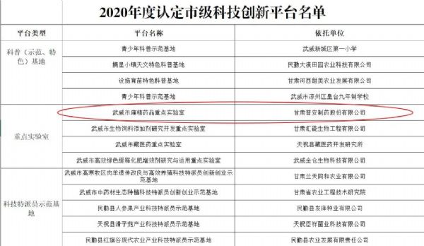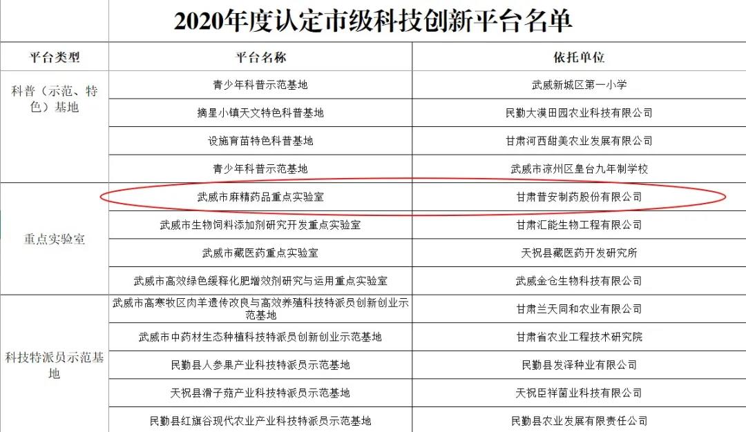 喜報!普安制藥通過“2020年武威市麻精藥品重點實驗室”認定