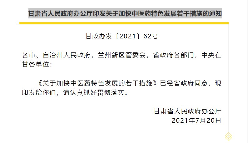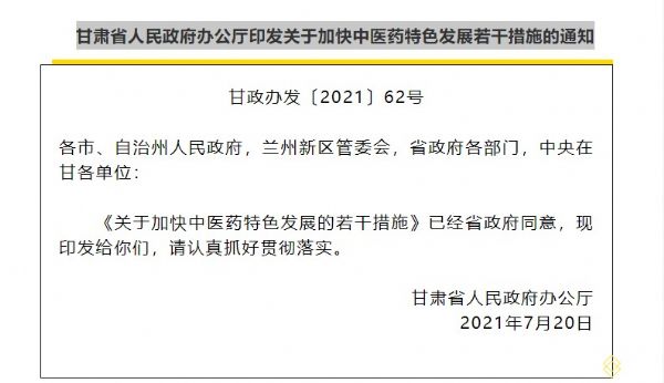 (五)加大中醫(yī)藥知識產權保護力度。發(fā)揮國家知識產權局甘肅業(yè)務受理職能作用,不斷優(yōu)化我省中藥領域發(fā)明專利申請、專利實施許可合同備案、專利權質押登記、專利優(yōu)先審查等服務工作,積極引導鼓勵中藥技術國際專利申請。充分利用地理標志保護機制,積極挖掘、培育道地藥材地理標志產品,做好道地藥材地理標志保護和運用。(省市場監(jiān)管局、省知識產權局、省衛(wèi)生健康委、省藥監(jiān)局負責)