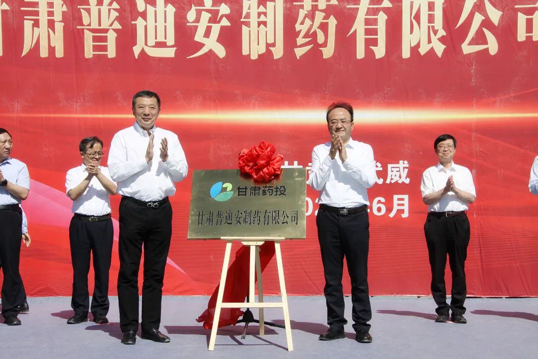奠基儀式由武威市委常委、常務(wù)副市長(zhǎng)白振海主持,市委常委、涼州區(qū)委書記李萬(wàn)岳、甘肅藥業(yè)集團(tuán)黨委副書記、總經(jīng)理竇生銘先后致辭講話。市委副書記、市長(zhǎng)王國(guó)斌與甘肅藥業(yè)集團(tuán)黨委書記、董事長(zhǎng)魏陽(yáng)為甘肅普迪安制藥有限公司揭牌并宣布項(xiàng)目開(kāi)工建設(shè)。