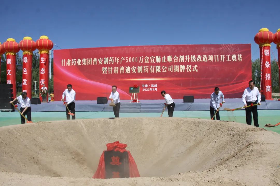 甘肅藥業(yè)集團(tuán)舉行普安制藥5000萬(wàn)盒宣肺止嗽合劑升級(jí)改造項(xiàng)目開(kāi)工暨普迪安公司成立揭牌儀式