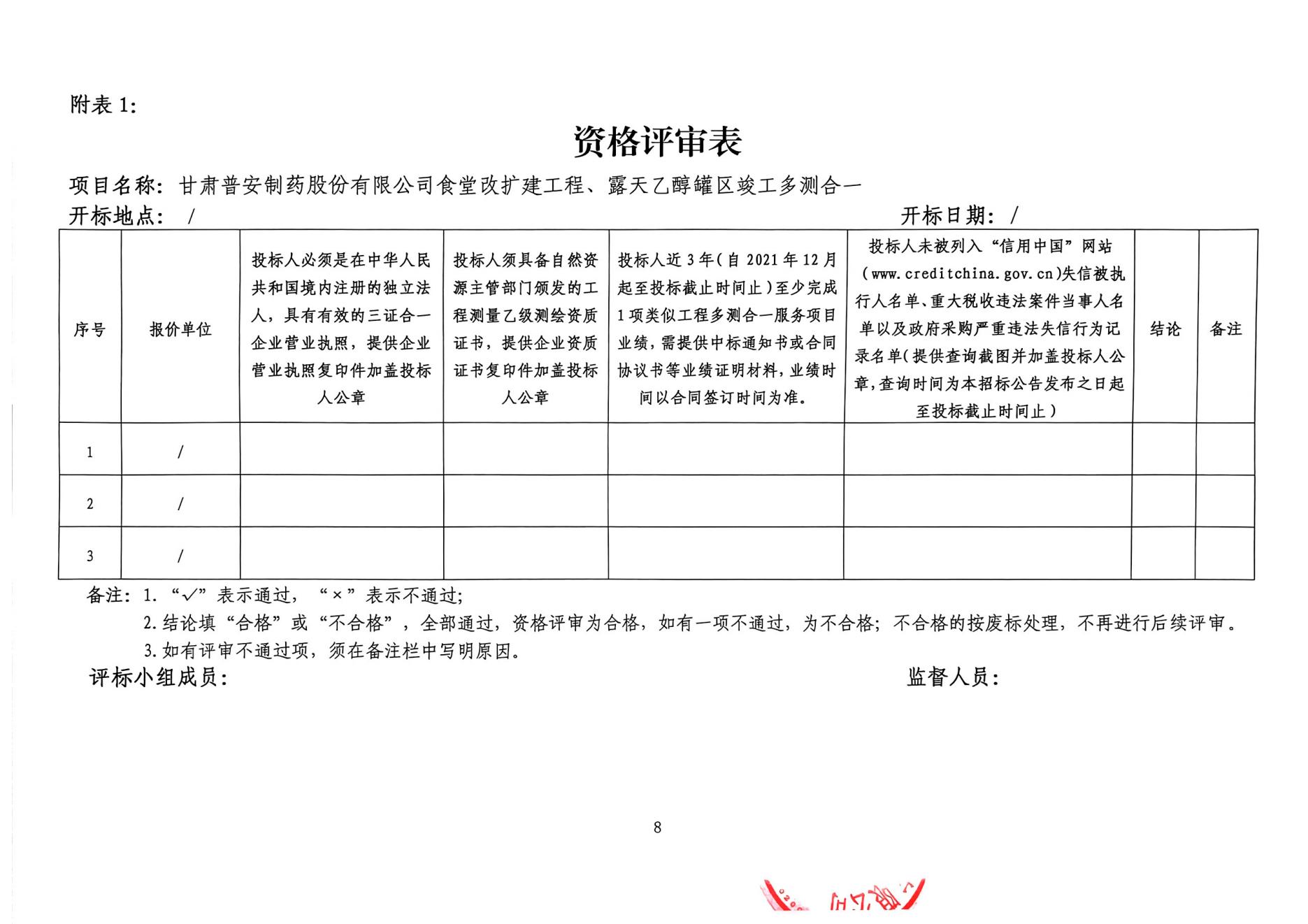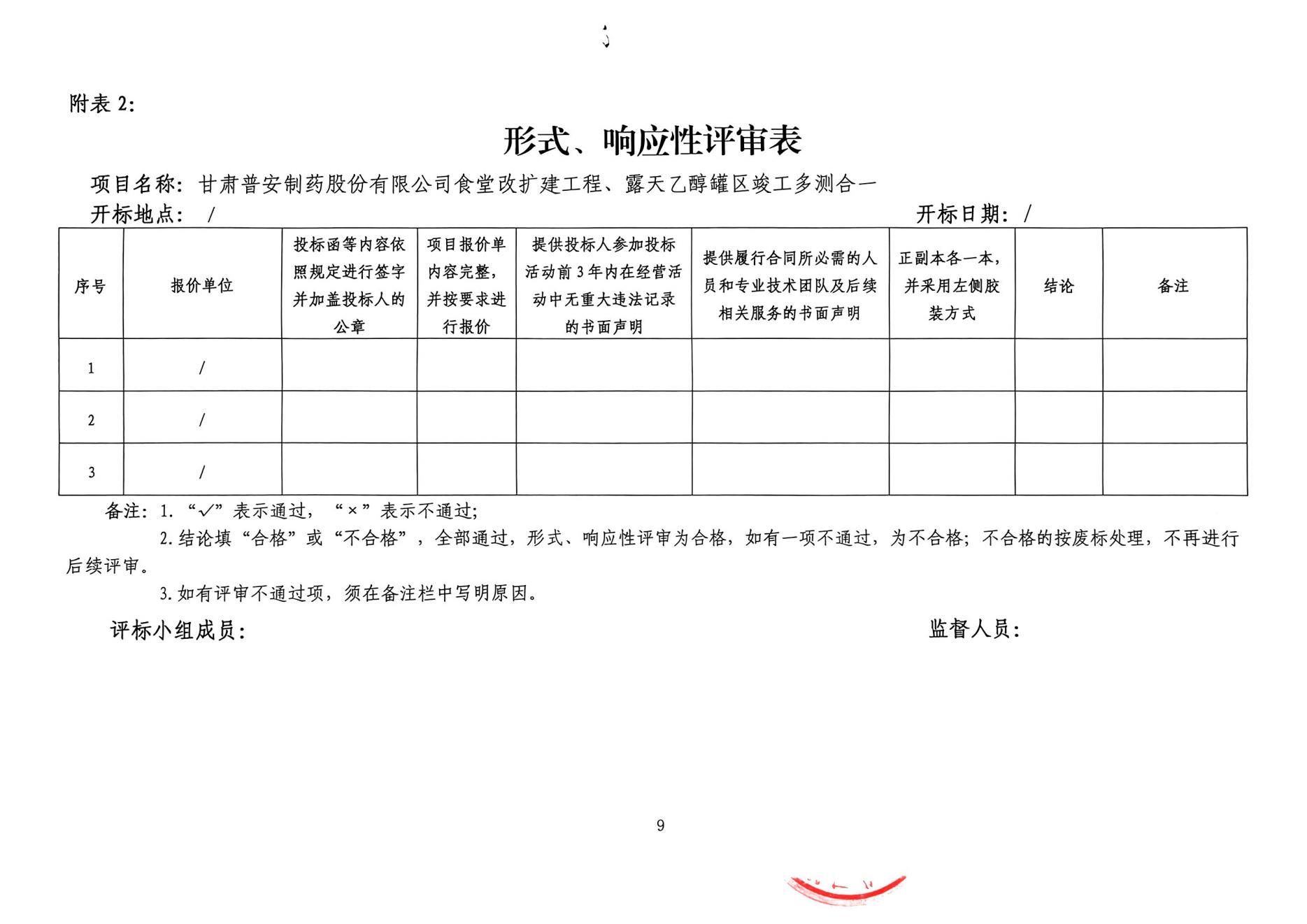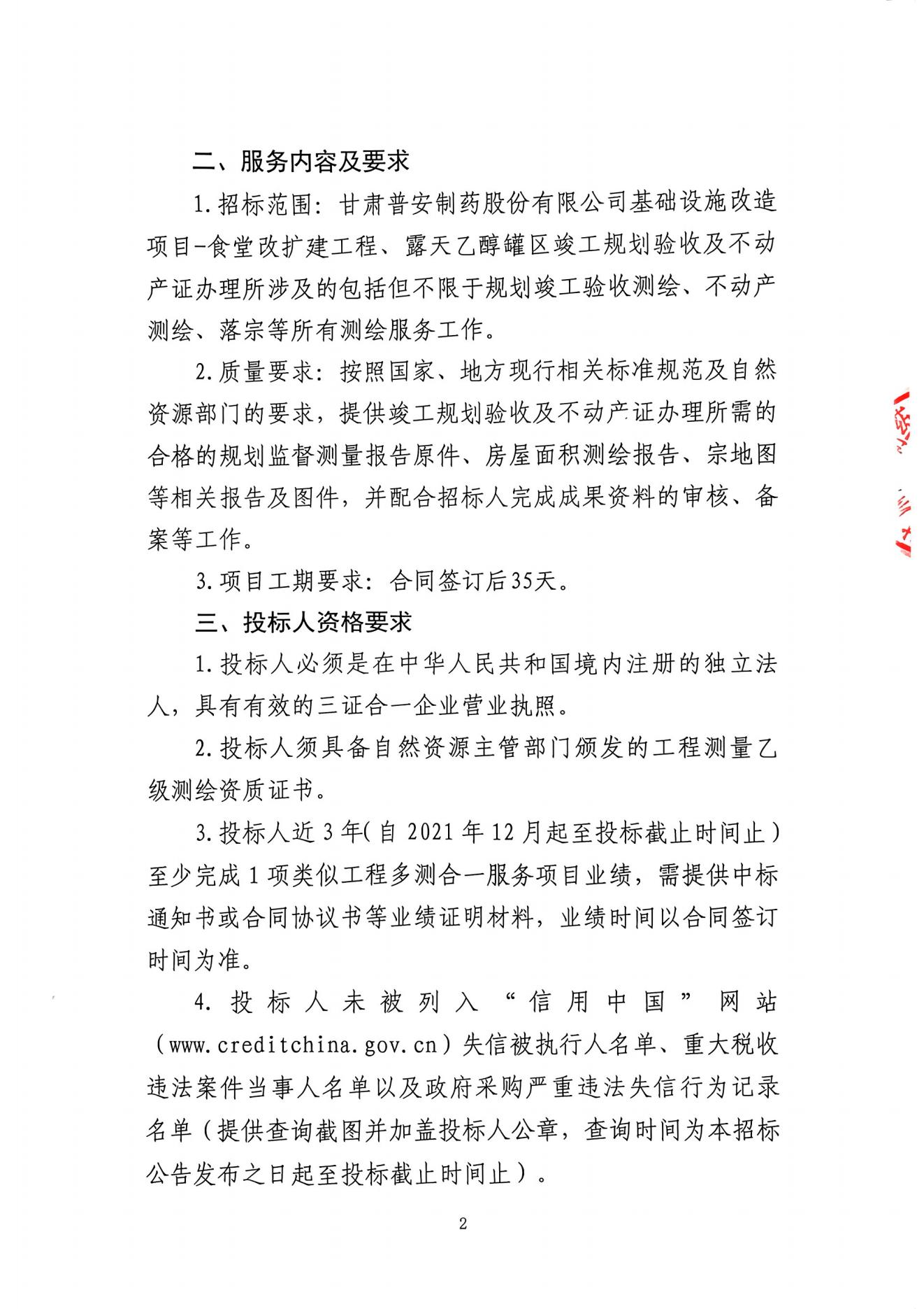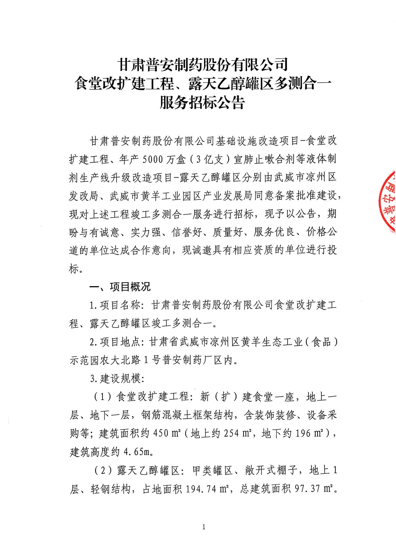 甘肅普安制藥股份有限公司食堂改擴(kuò)建工程、露天乙醇罐區(qū)多測(cè)合一服務(wù)招標(biāo)公告