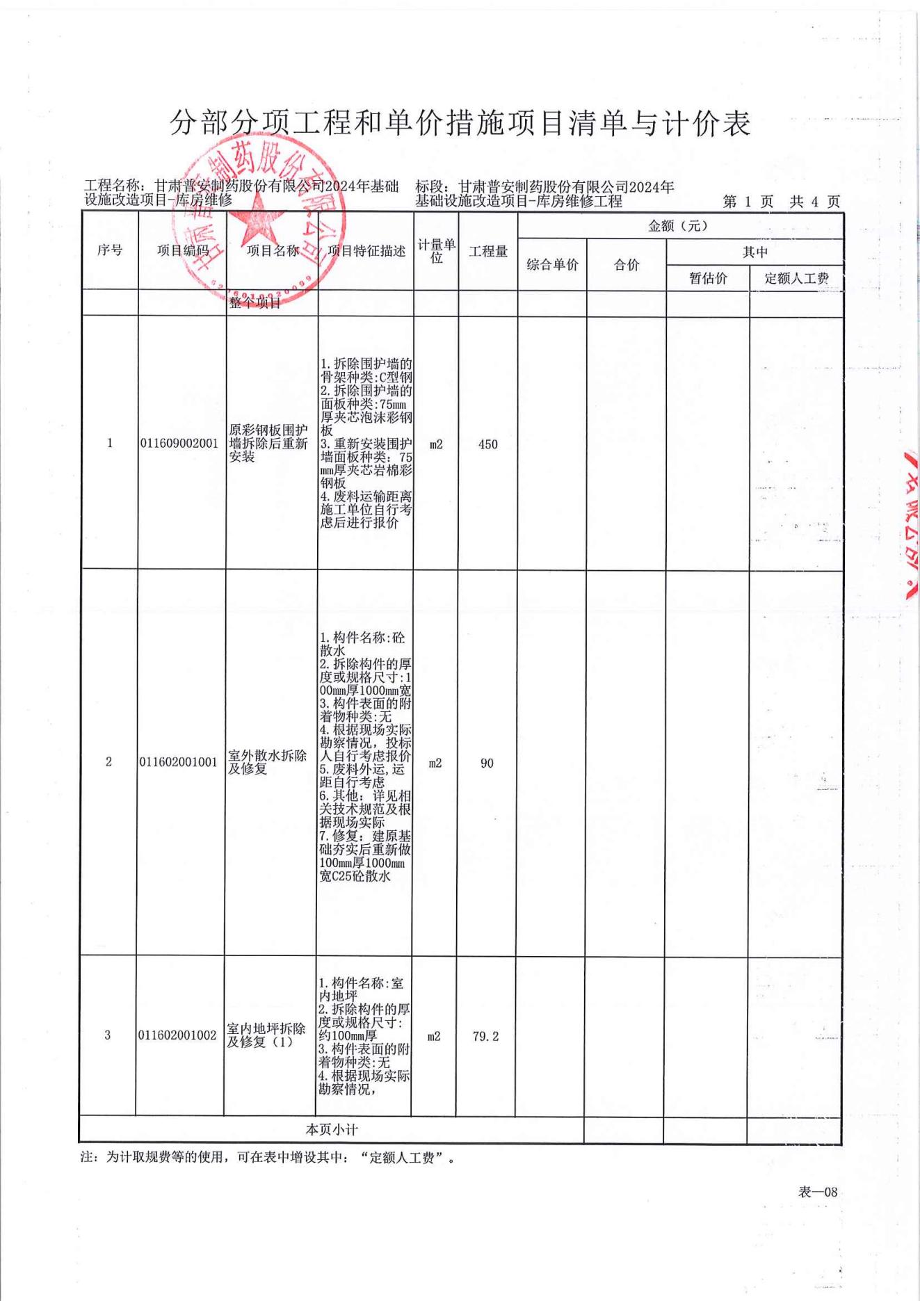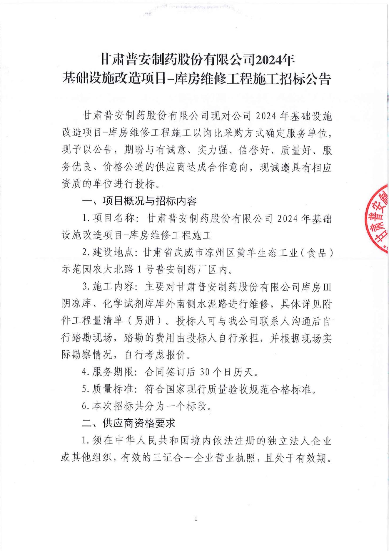甘肅普安制藥股份有限公司2024年基礎(chǔ)設(shè)施改造項(xiàng)目-庫房維修工程施工招標(biāo)公告