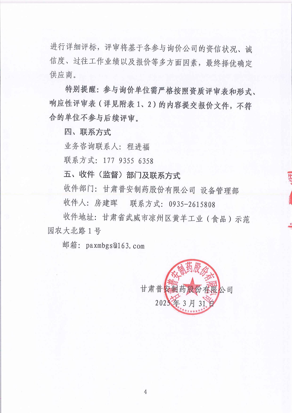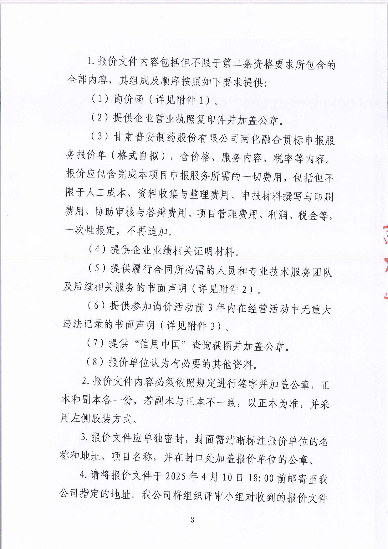 甘肅普安制藥股份有限公司兩化融合貫標咨詢及認證服務詢價公告