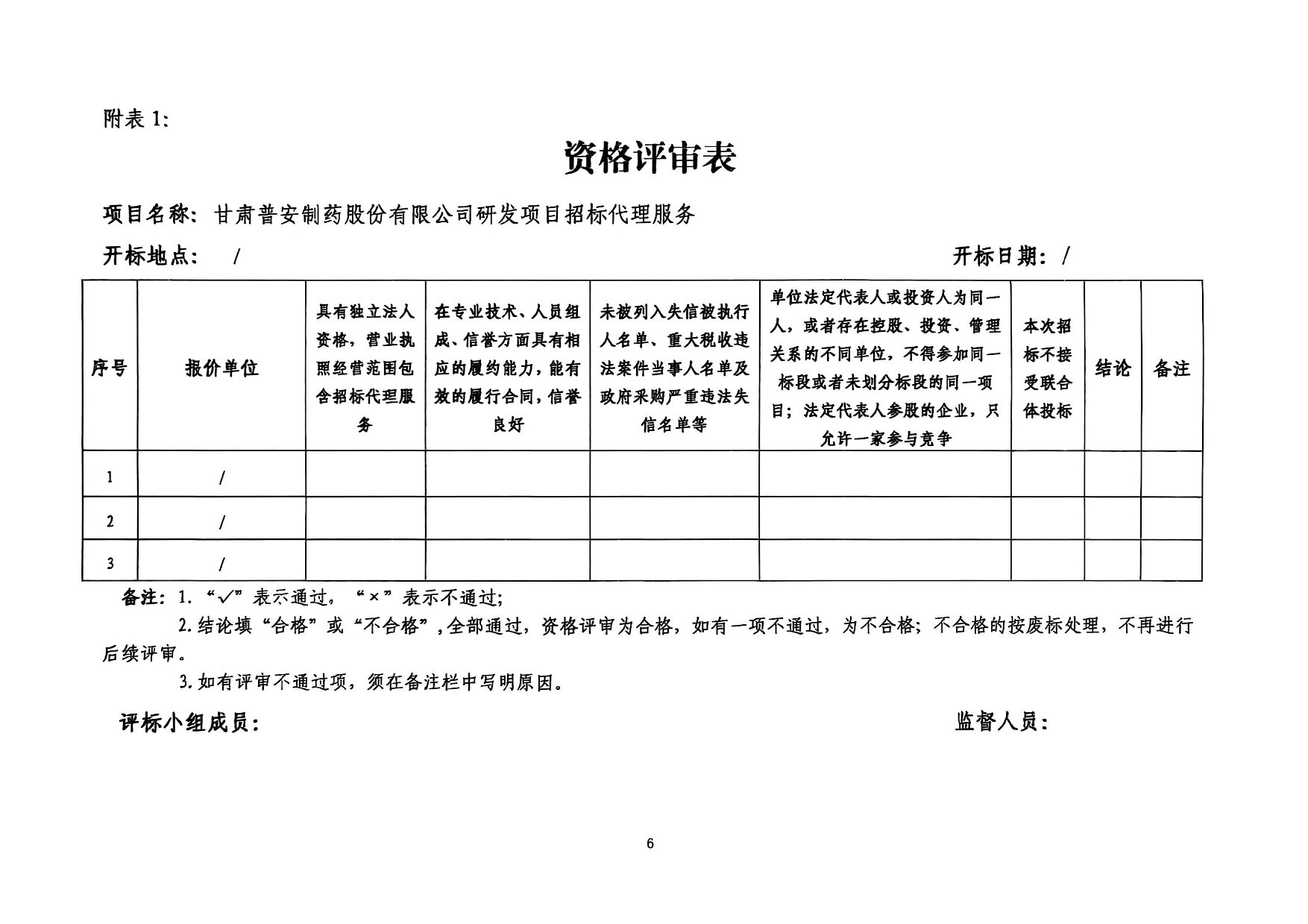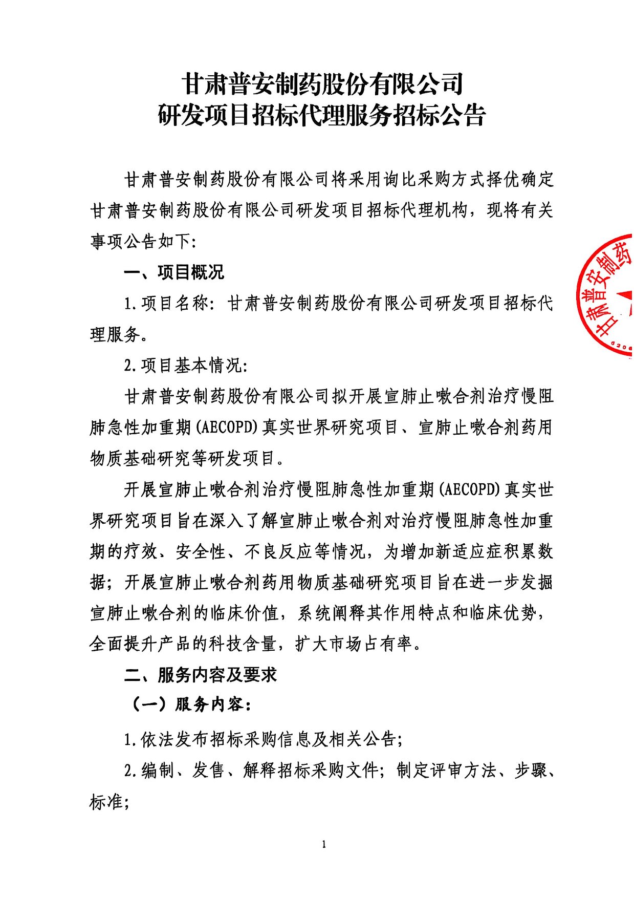 甘肅普安制藥股份有限公司研發(fā)項目招標(biāo)代理服務(wù)招標(biāo)公告