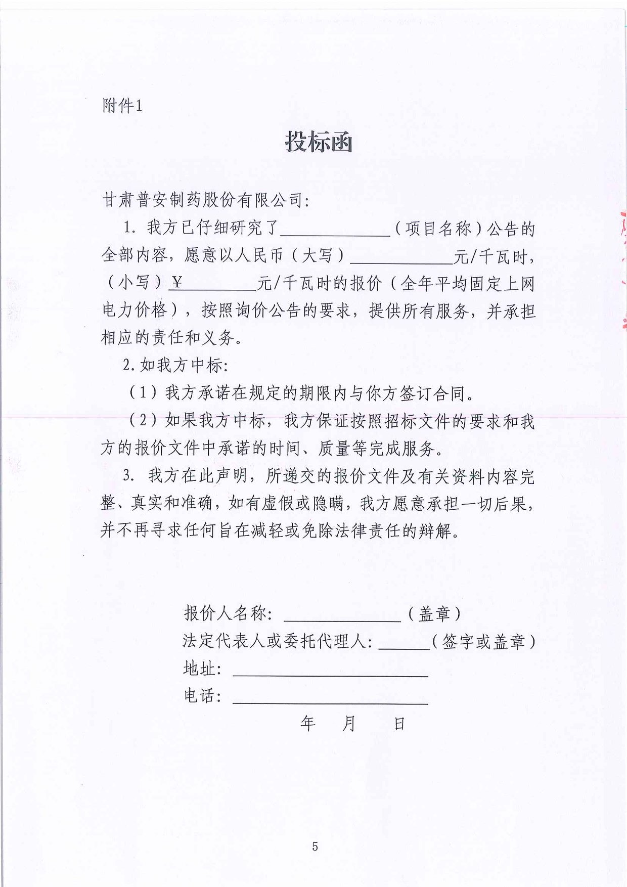甘肅普安制藥股份有限公司2026年度售電公司市場化電力交易詢價公告